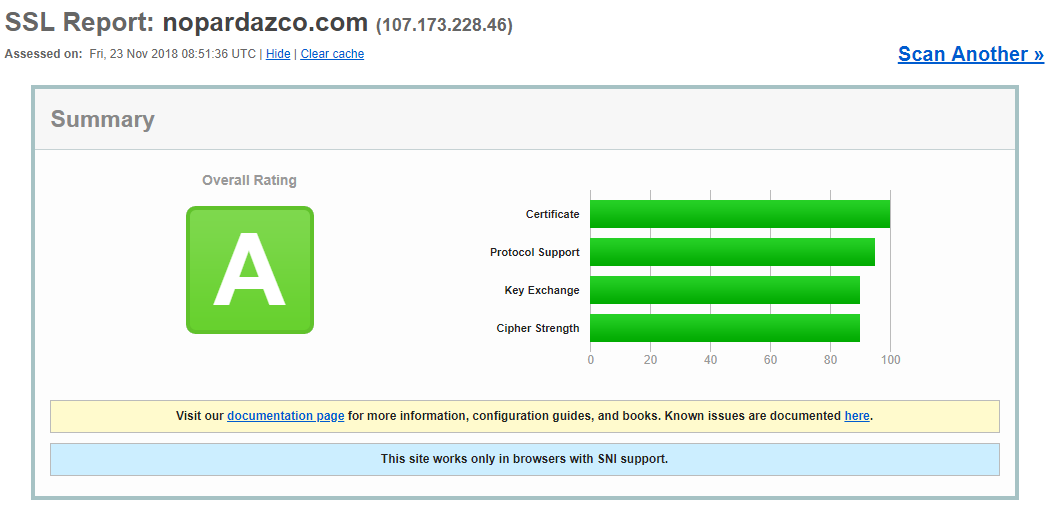 همانطور که در تصویر بالا مشاهده می کنید، SSL Server Test یک ابزار رایگان تست ssl وب سرور است که آنالیز های مختلفی را در اختیار شما قرار می دهد. همچنین اطلاعات بیشتری درباره کلید ها، Certificate، کانفیگ و جزئیات پروتکل ssl در اختیار شما قرار خواهد داد.