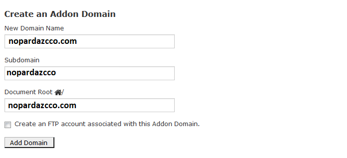 بخش Subdomain/FTP username و Document Root به صورت خودکار ایجاد میشوند.