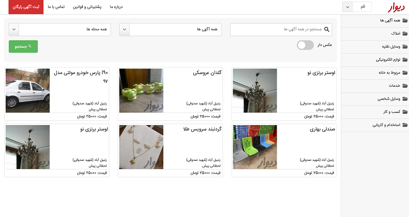 - امکان اعمال فیلتر و جستجو در آگهی ها