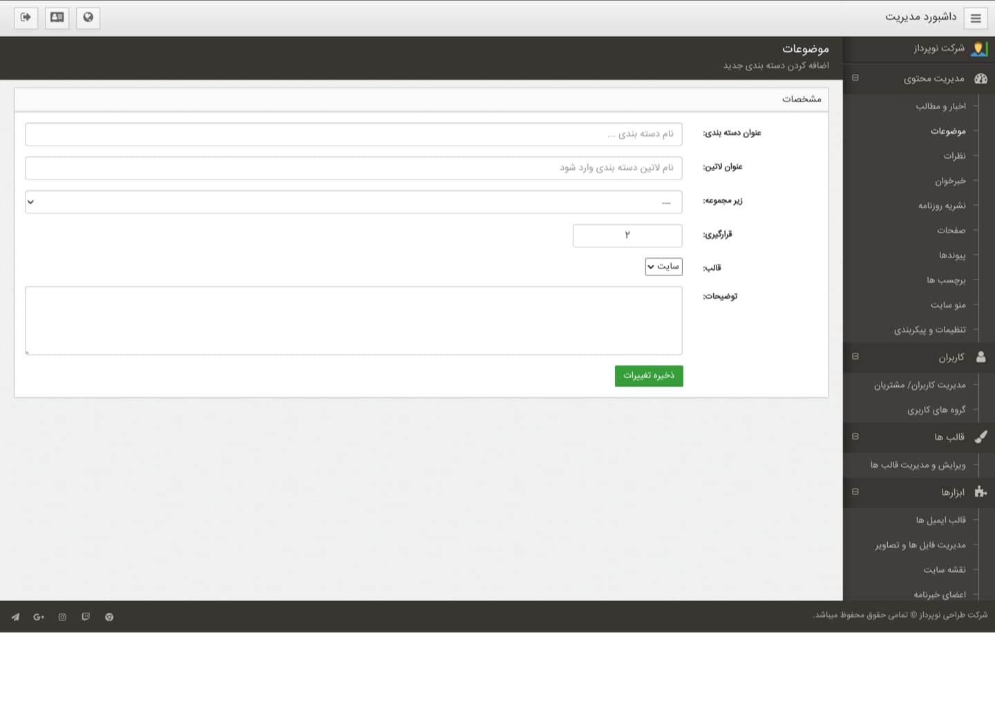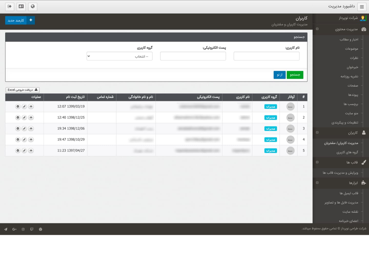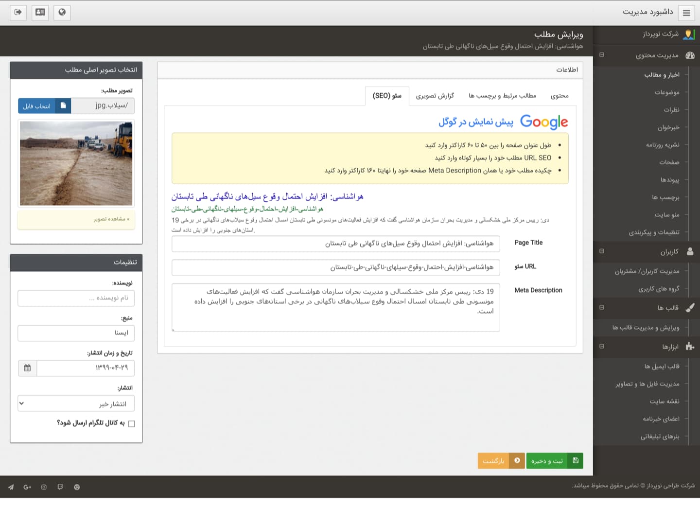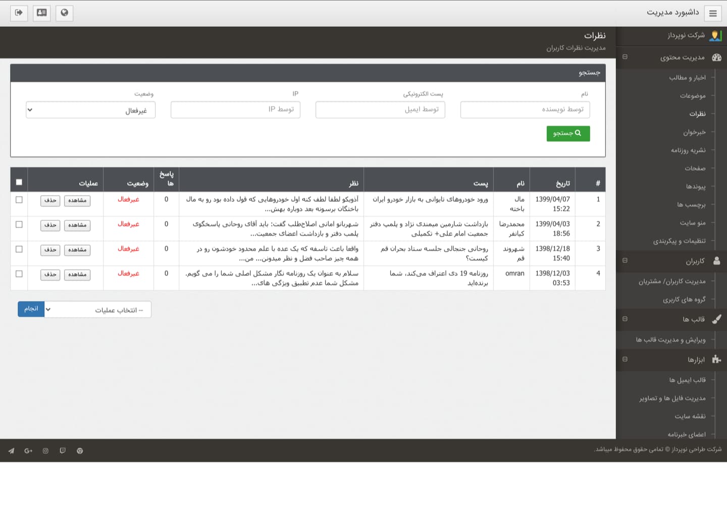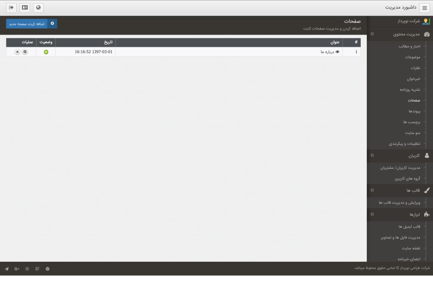 ما در پنل مدیریت خبری ایجاد شده توسط نوپرداز تلاش کرده ایم تا امکانات به ساده ترین و حرفه ای ترین روش برای شما قابل تغییر و دسترسی باشند. کاربرد آسان و حرفه ای سایت و به ثمر رساندن اساسی ترین خواسته های مشتریان از ملزوماتی است که در شرکت نوپرداز رعایت می گردد.