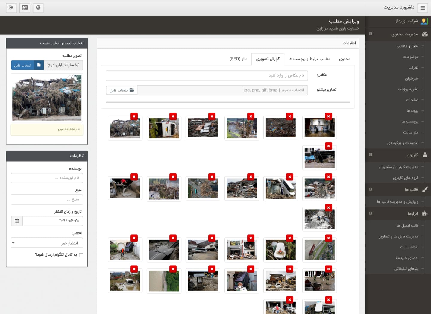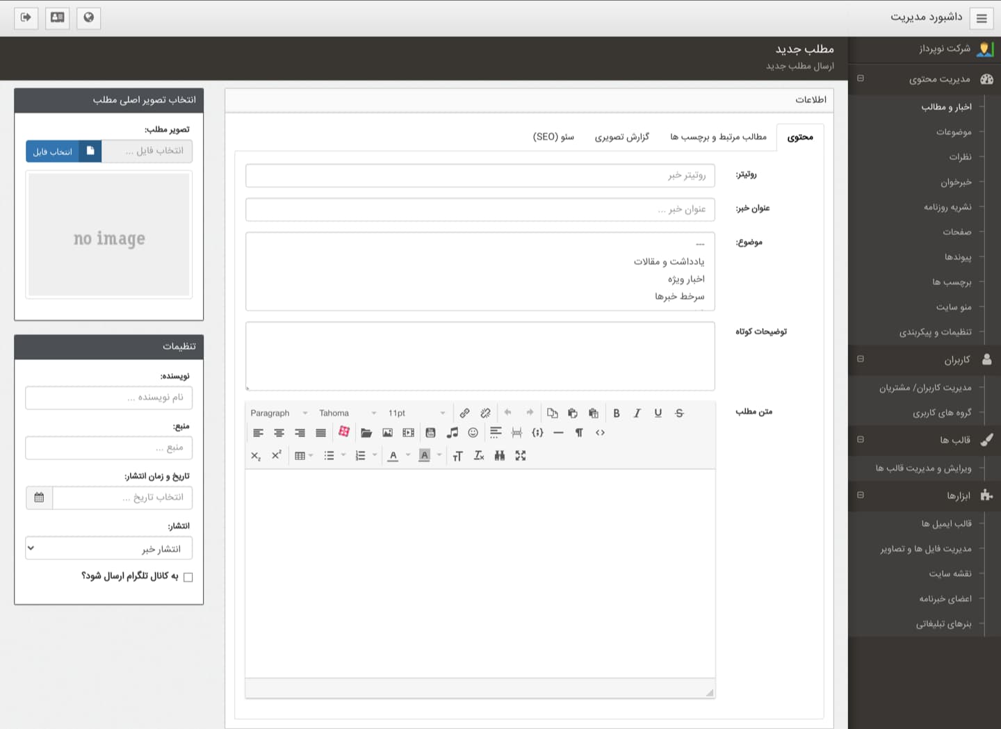 سیستم خبری نوپرداز یک CMS اختصاصی بوده که از صفر برنامه نویسی شده است تمام امکانات مخصوص یک اتوماسیون خبری را دارا میباشد