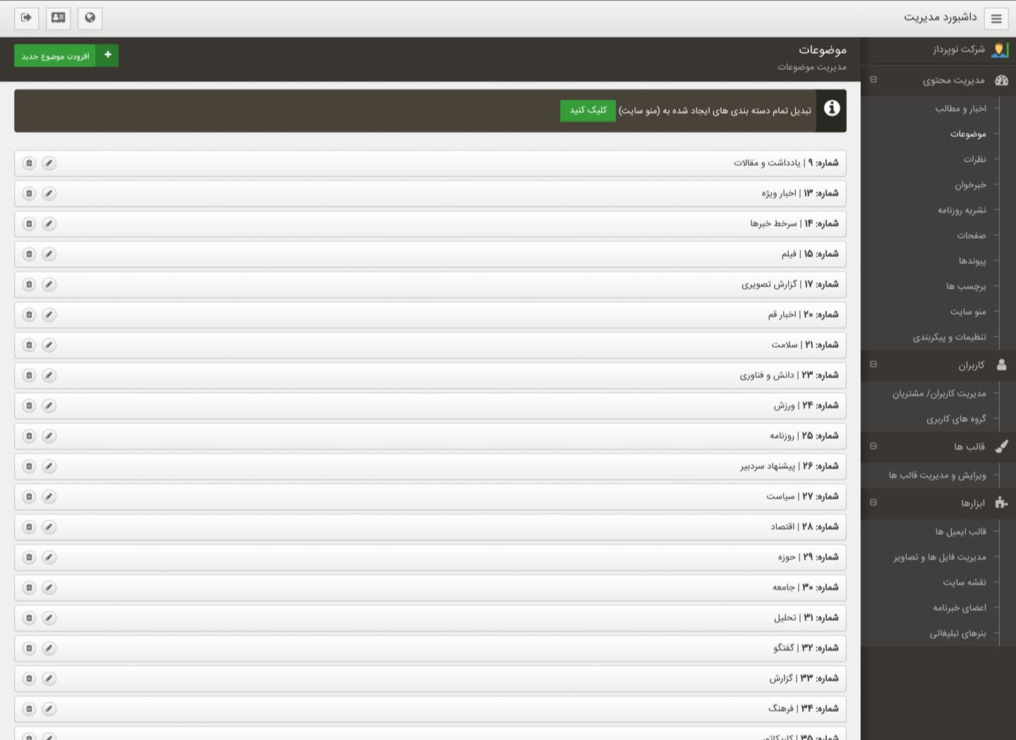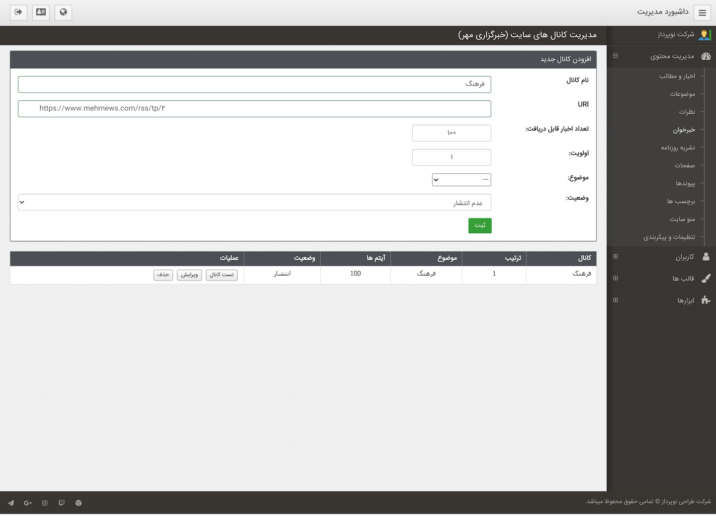 ویژگی خبرخوان نوپرداز در این است که می توانید اخبار دریافت شده را دسته بندی کرده و در موضوعات سایت خود بصورت خودکار یا بصورت دستی تنظیم و منتشر کنید.