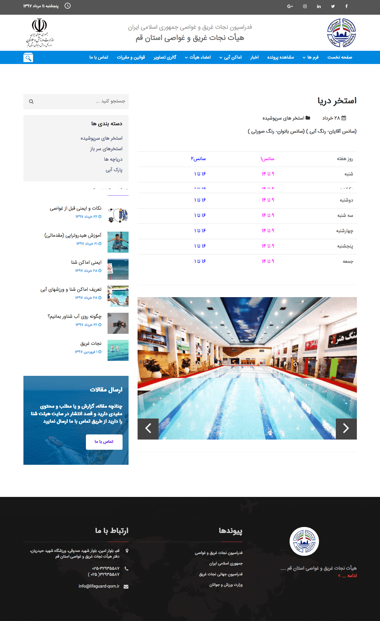 طراحی سایت سازمانی هیئت شنا و غریق نجات استان قم توسط شرکت نوپرداز