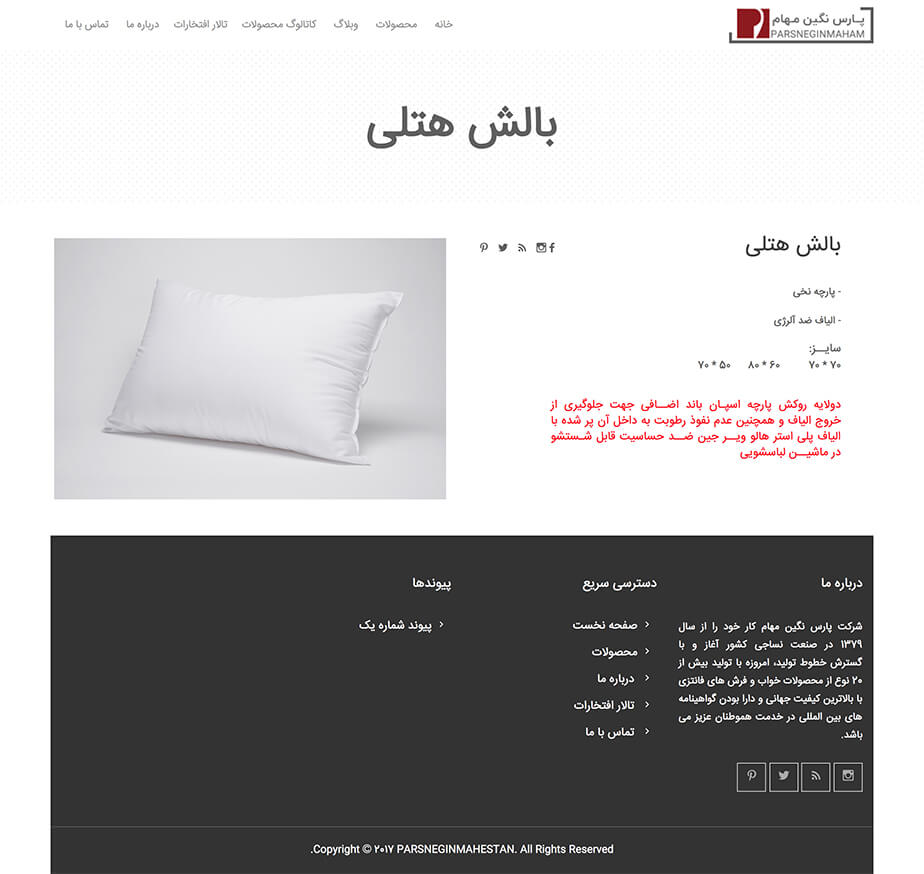 طراحی و پیاده سازی سایت شرکت صنایع نساجی پارس نگین مهام