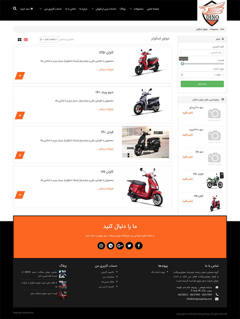 طراحی فروشگاه آنلاین کروه صنعتی دینو