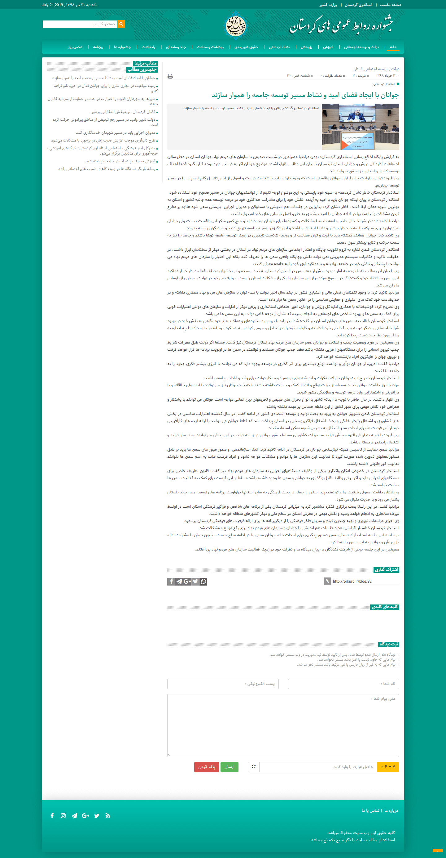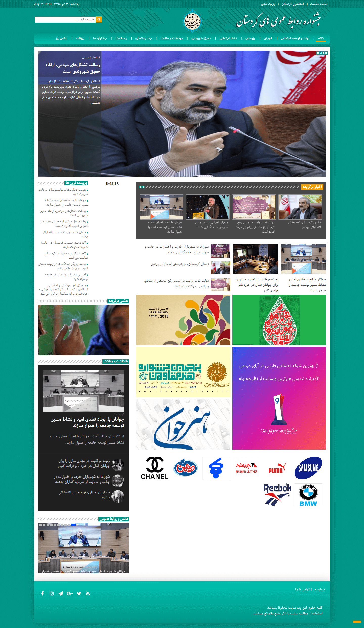 طراحی سایت خبری جشنواره نمونه کارهای کردستان توسط شرکت طراحی سایت نوپردز بصورت اختصاصی طراحی، برنامه نویسی و پیاده سازی شده است.