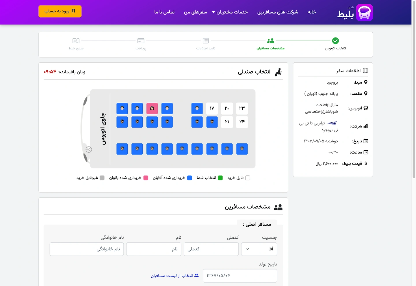 - امکان انتخاب شرکت مسافر بری دلخواه