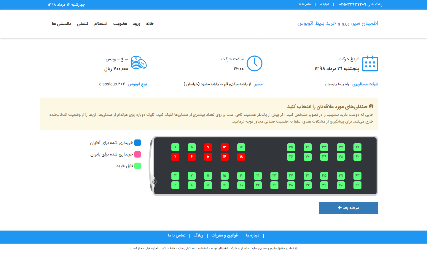 امکانات طراحی سایت رزرو و خرید بلیط اتوبوس اطمینان سیر
