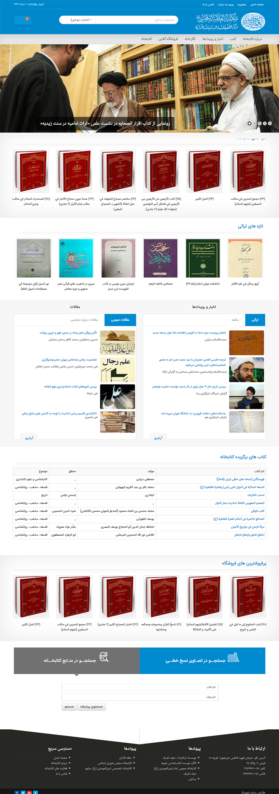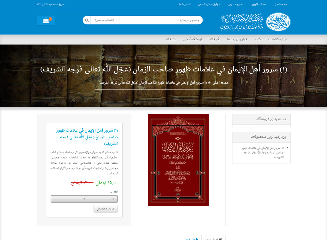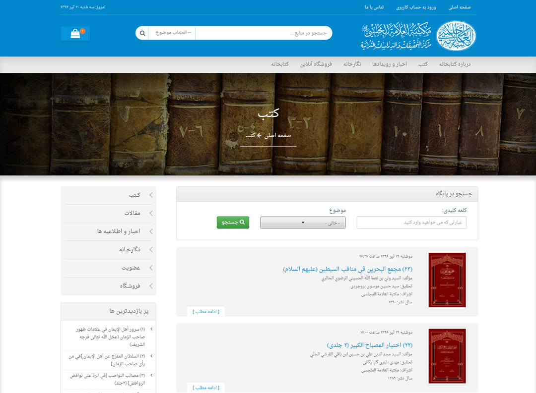 طراحی سایت و طراحی فروشگاه اینترنتی و همچنین پیاده سازی کتابخانه آنلاین دیجیتال علامه مجلسی به سه زبان فارسی - عربی - انگلیسی یکی دیگر از حرفه ای ترین کارهای شرکت نوپرداز میباشد.