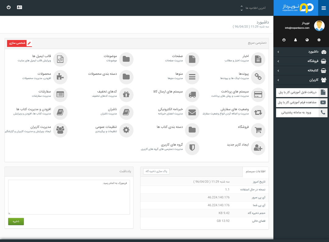 - مدیریت و ایجاد صفحات (مثال: صفحه درباره ما – قوانین و...)