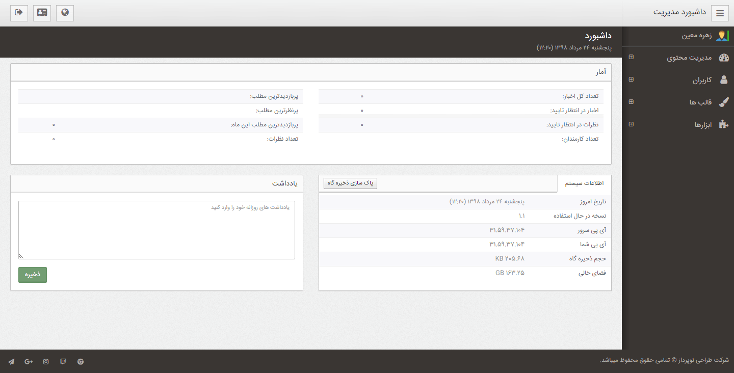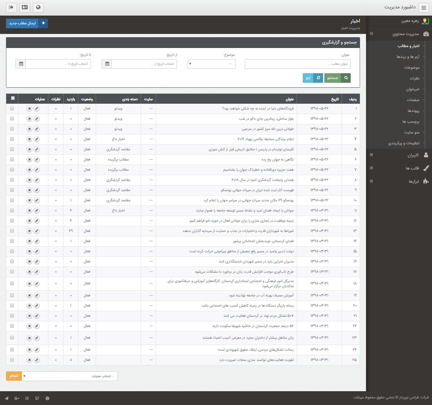 طراحی سایت آژانس خبری گردشگری کردستان نیز یکی از پروژه های شرکت طراحی سات نوپرداز در زمینه طراحی سایت خبری می باشد.