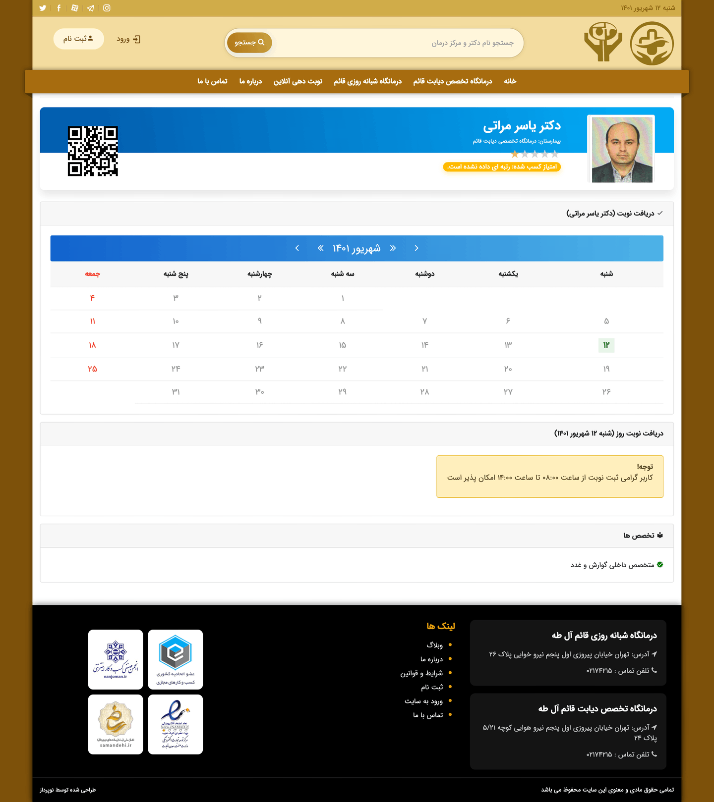 طراحی سایت درمانگاه قائم دارای نوبت دهی اینترنتی و بر خط