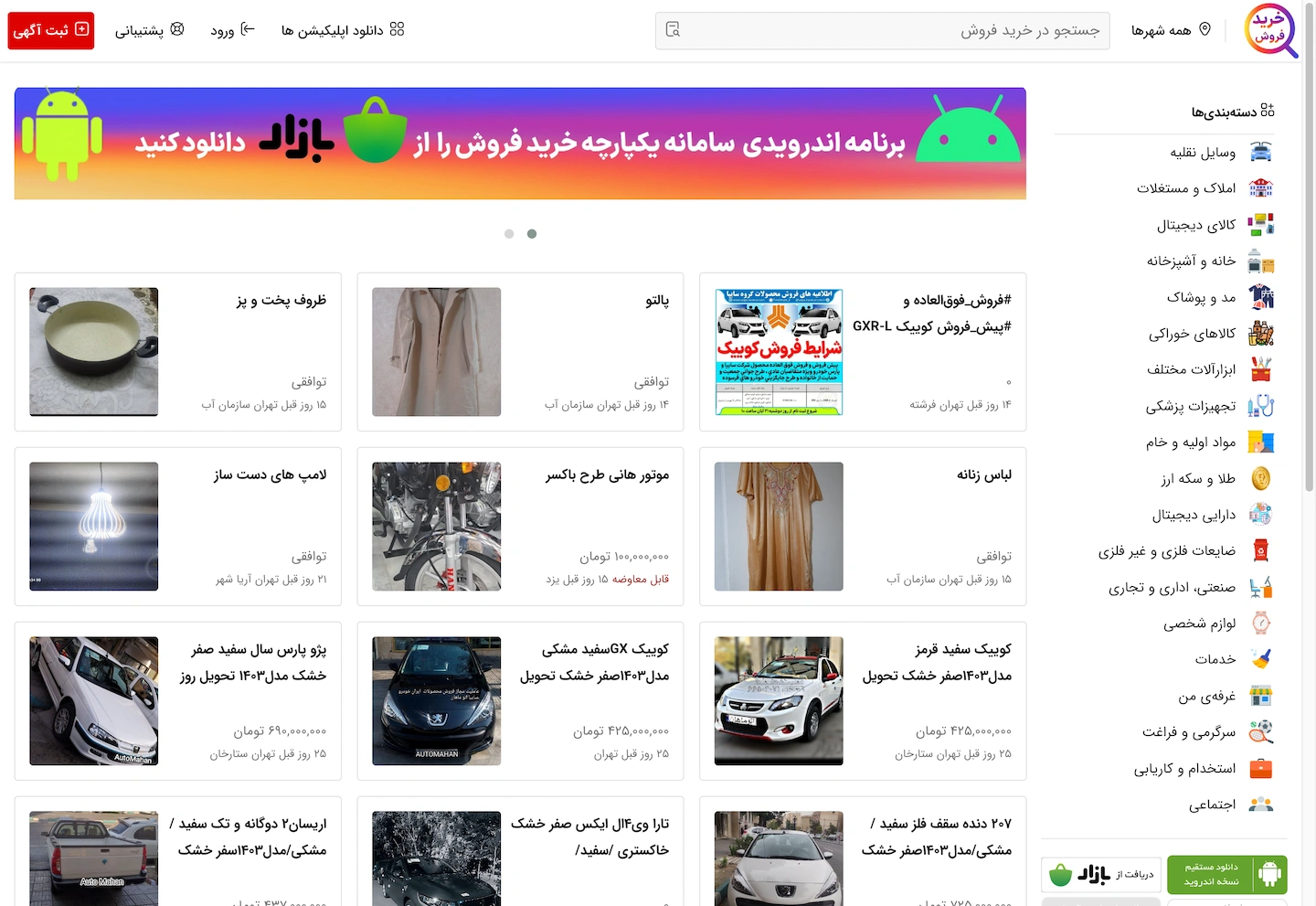 خرید و فروش نمونهای از پروژههای شرکت نوپرداز است که شامل طراحی وبسایت و اپلیکیشنهای اندروید و iOS برای ثبت و مشاهده آگهیهای آنلاین میباشد