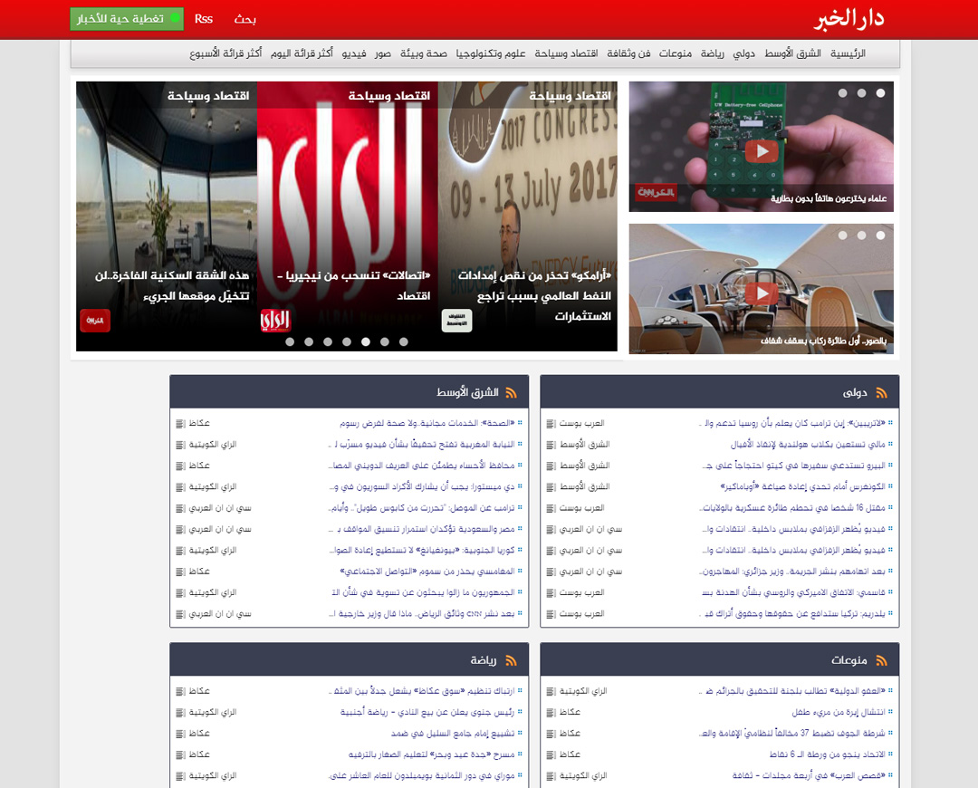 طراحی سایت خبرخوان دارالخبر به زبان عربی پوشش زنده و جمع آوری خودکار و اتوماتیک اخبار از سایت های تعریف شده به نرم افزار و همچنین طراحی وب سایت واکنش گرا و بهینه سازی و آنالیز سایت برای این سایت انجام گردیده است.